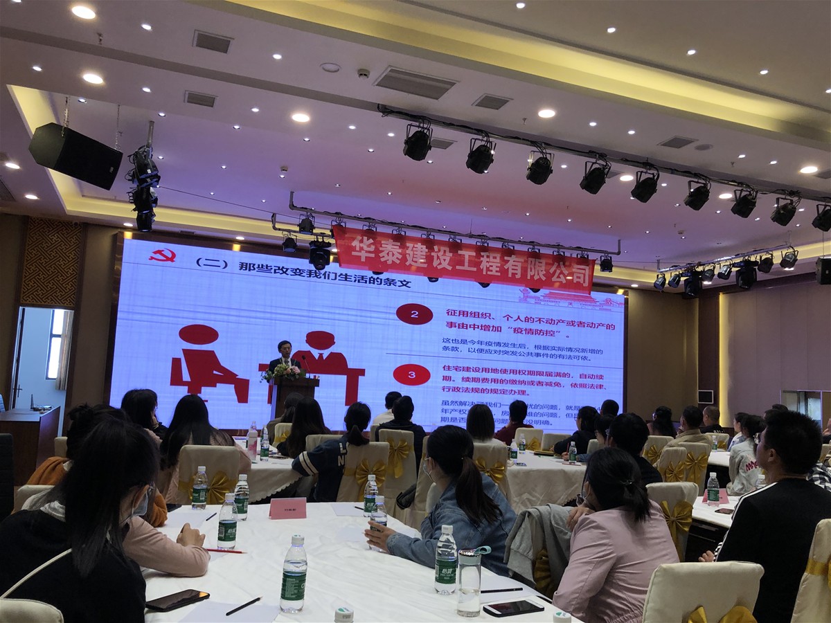 2020年11月14日我司組織本公司總部員工與各項(xiàng)目代表現(xiàn)場(chǎng)集中學(xué)習(xí)《民法典》,互相交流了學(xué)習(xí)心得。本次培訓(xùn)由江西豫章律師事務(wù)所徐建章律師主持,并為我司解答相關(guān)的法律疑問。