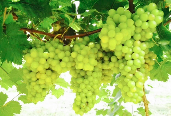 這個(gè)令人垂涎不止的葡萄有個(gè)很美的名字叫夏因馬斯卡特鮮葡萄,入口即可以感受到一股淡淡的玫瑰香味,穗重600克左右,大穗可達(dá)1500克左右,平均果粒重8-15克;果粒著生緊蜜,橢圓形,黃綠色,果面有光澤,果粉少,果肉鮮脆多汁,糖度最高達(dá)26度左右。