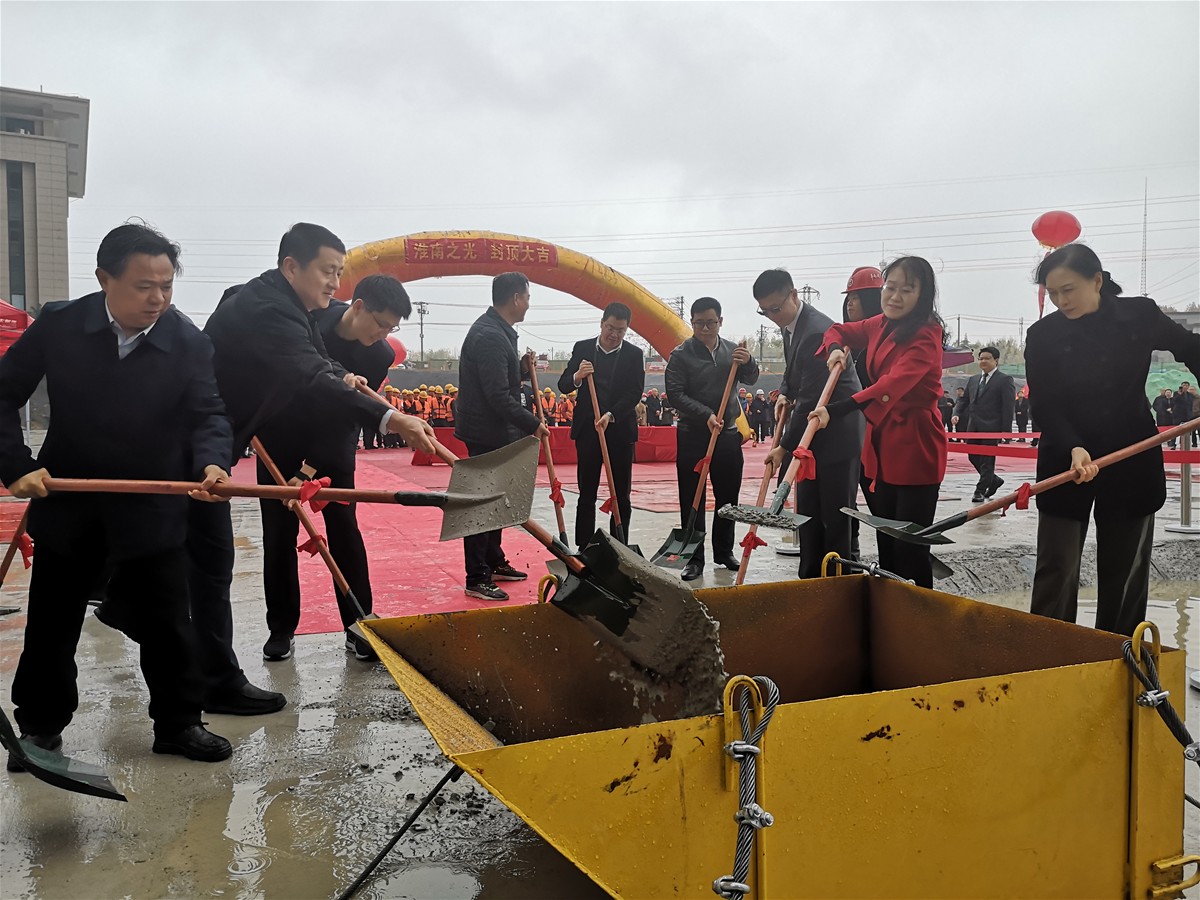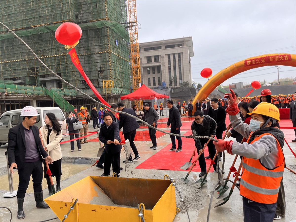 在宣布住宅樓正式封頂后,出席儀式的相關(guān)領(lǐng)導(dǎo)和嘉賓共同舉行澆筑儀式。