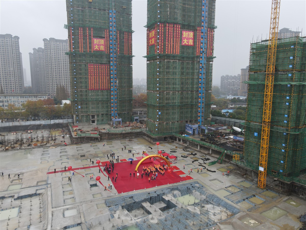儀式上,華泰建設(shè)常務(wù)副總經(jīng)理周立輝致辭:自今年6月26日開工奠基以來,歷時(shí)149天,完成了3#、4#樓主體結(jié)構(gòu)的封頂,這標(biāo)志著該項(xiàng)建設(shè)工程取得了重要的階段性勝利。細(xì)節(jié)見證品質(zhì),精工確保質(zhì)量。從項(xiàng)目正式動(dòng)工開始到各項(xiàng)基建工作,在標(biāo)準(zhǔn)化管理流程和安全規(guī)范下,華泰對(duì)建筑材料、施工隊(duì)伍、工藝工法等事關(guān)品質(zhì)的每一個(gè)細(xì)節(jié),都予以了更嚴(yán)謹(jǐn)、精確的把控與質(zhì)檢,全面確保工程質(zhì)量規(guī)范化、制度化、專業(yè)化,將精工品質(zhì)貫徹到底。從嚴(yán)按照目標(biāo)不變、任務(wù)不減、要求不降的原則,堅(jiān)決保證建設(shè)品質(zhì),達(dá)成各項(xiàng)指標(biāo)。