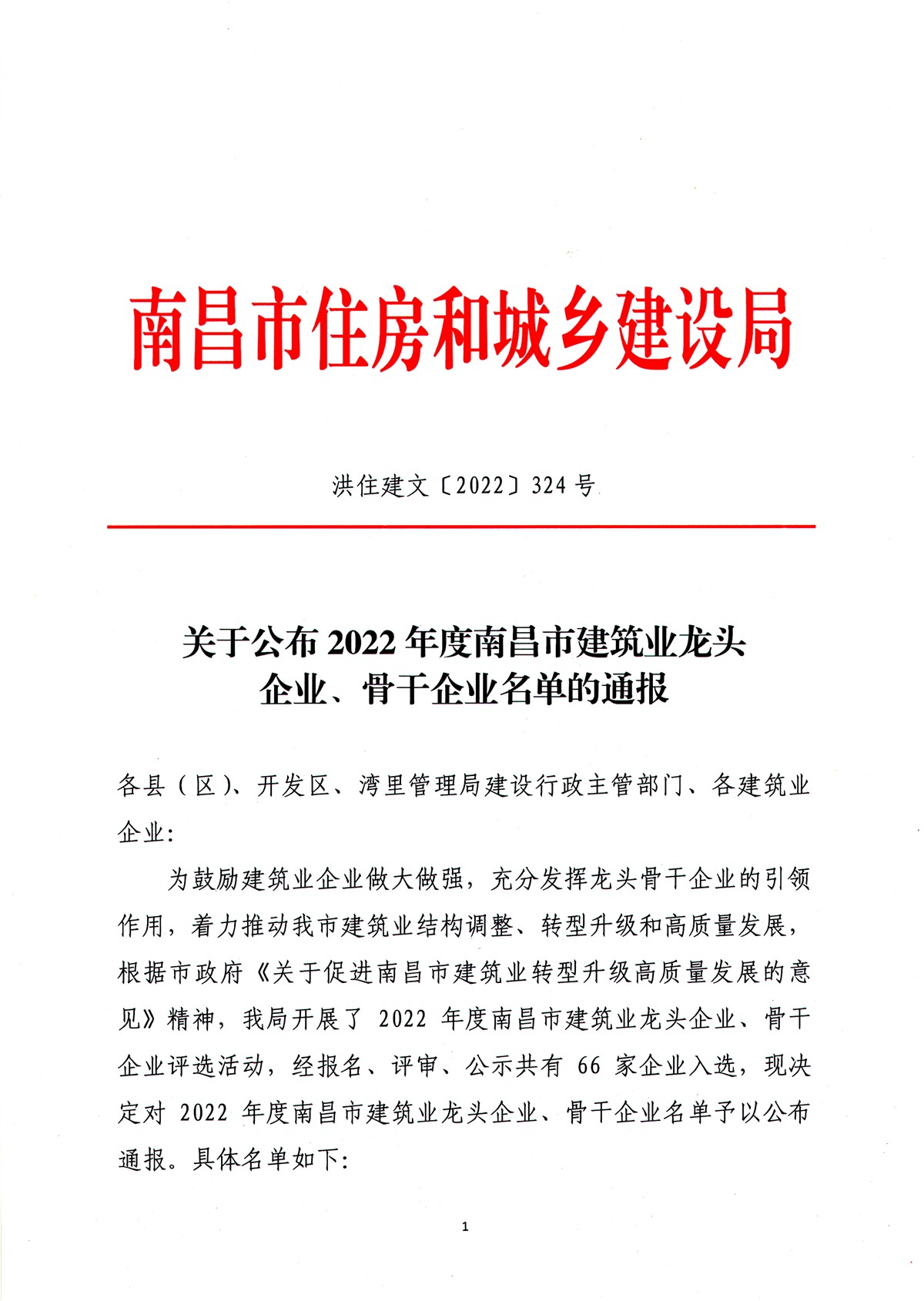 近日,我市住房和城鄉(xiāng)建設(shè)局組織開展的2022年度南昌市建筑業(yè)龍頭企業(yè)、骨干企業(yè)的評選活動落下帷幕。通過企業(yè)資質(zhì)、產(chǎn)值稅收、質(zhì)量安全、獎勵表彰、科技創(chuàng)新、經(jīng)營管理、社會責(zé)任等多方面評比,華泰建設(shè)工程有限公司憑借優(yōu)異的綜合實力獲評“2022年度南昌市建筑業(yè)骨干企業(yè)”榮譽稱號。